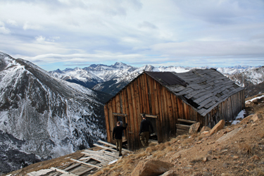 We worked our way upward, skipping a number of trail segments to just take a direct "get it over with" line upward. The theory worked just fine as we gained elevation and within an hour or so broke the skyline that we knew was not the summit but would certainly be getting close. The skyline break was of course a change of slope and as we took a breather, we could see the remains of the Champion Mine off to the east. Being a mining head and having curious Cal on board, meant that we had to check out the ruins, simply no other option. The old winding gear lay in a nearby depression and the gang house offered a moment to consider miners past and the harsh winters that took their toll on both men and machine.