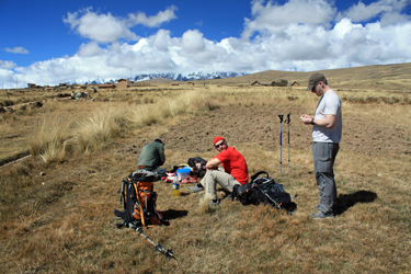 We had covered about 8 miles and were ready for dinner. Domingo did not disappoint and when dinner was served it was fresh fish, rice, after a bowl of soup to start the affair off. Dinner is not complete without dessert and the chocolate pudding fit the bill for sure. Our next task was to determine the game plan for the next day . . . a rest day in Pacchanta or another day's hike of about 8 miles to a camp below Campa Pass. We'd been going pretty much non stop since leaving Cheyenne and we knew from prior trips that a rest day had to be in the cards. Pacchanta has a hot spring and a soak never hurt anyone. A day in Pacchanta seemed more prudent than a colder rest day at the next higher spot. We resisted the common and driving 'let's get climbing" urge and advised the crew that we would sit tight in Pacchanta for a day of rest.